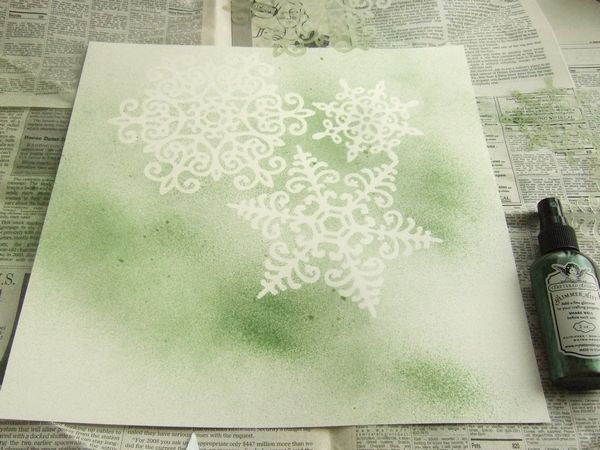 TATERED ANGELSのグリマーミストとマスクを使ったレイアウトを作りました!ミストは私の大好きなグリーンから「English Ivy」をチョイス♪